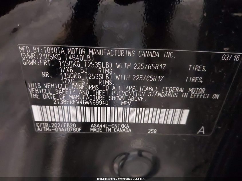 2016 TOYOTA RAV4 LIMITED