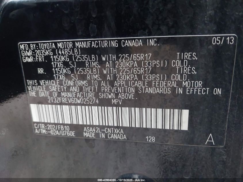 2013 TOYOTA RAV4 - 2T3ZFREV6DW025274, колір - Чорний, 2.5, Бензин, Передній привід із США