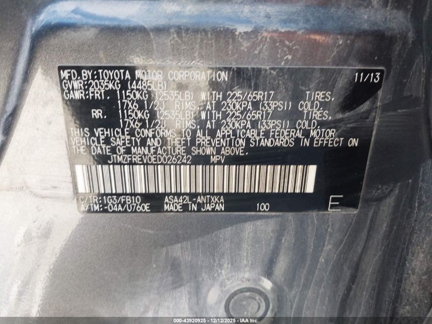 Колір СірийЦиліндри 4Привід Передній привідVIN JTMZFREV0ED026242Стан СтаціонарноУшкодження Електрика