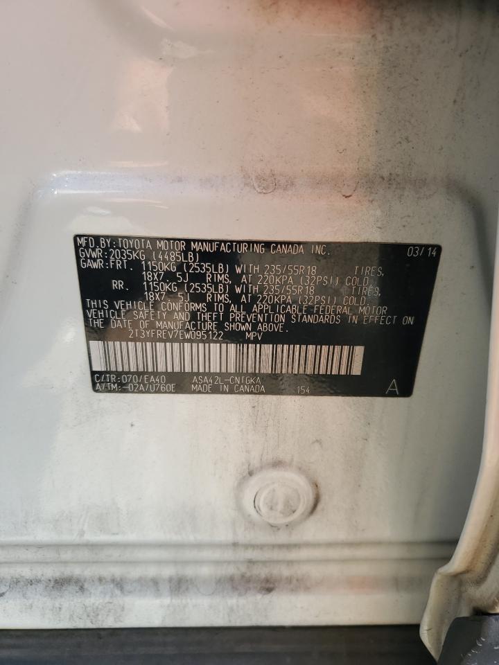 2014 TOYOTA RAV4 - 2T3YFREV7EW095122, колір - Білий, 2.5, Бензин, із США