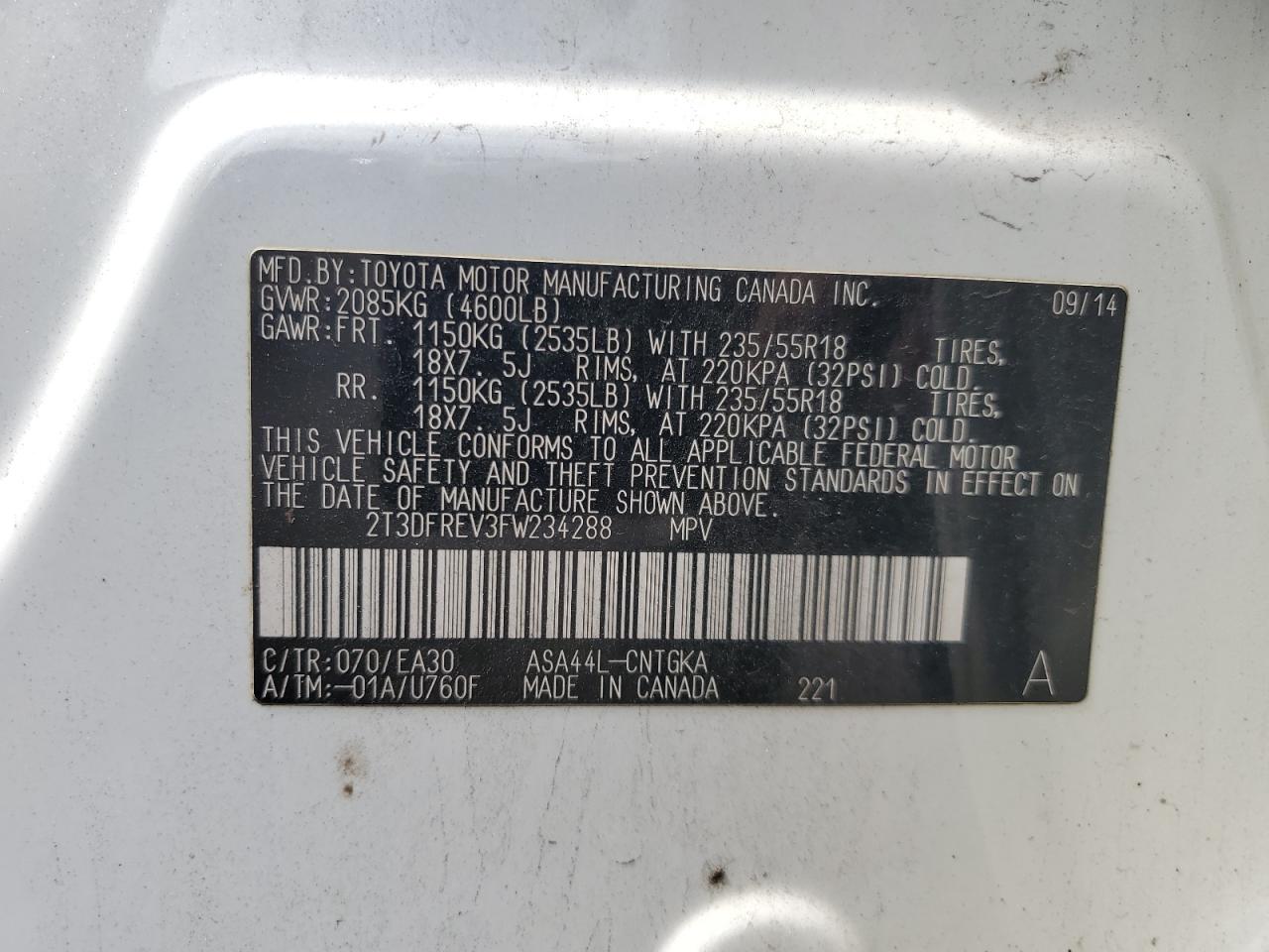 Колір БілийЦиліндри 4Привід Повний привідVIN 2T3DFREV3FW234288Стан Заводиться та їде (перевірено)Ушкодження НезначніДата аукціона 2025-10-07