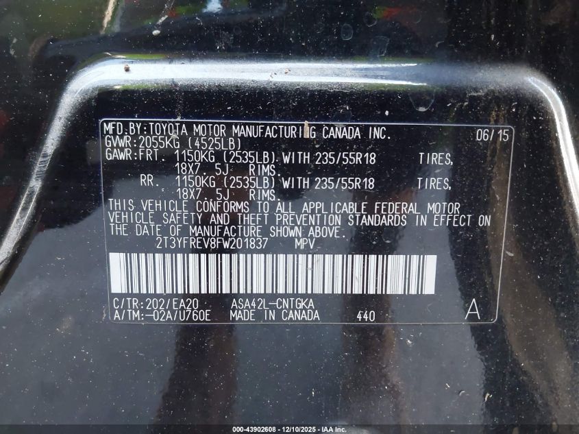 2015 TOYOTA RAV4 - 2T3YFREV8FW201837, колір - Чорний, 2.5, Бензин, Передній привід із США