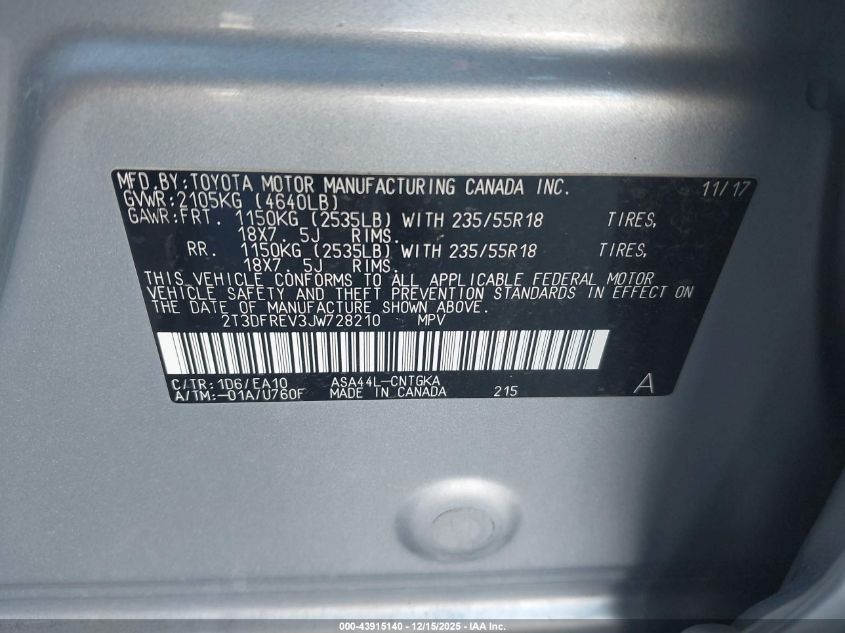 Колір СірийЦиліндри 4Привід Повний привідVIN 2T3DFREV3JW728210Стан Заводиться та їде (перевірено)Ушкодження Права сторона