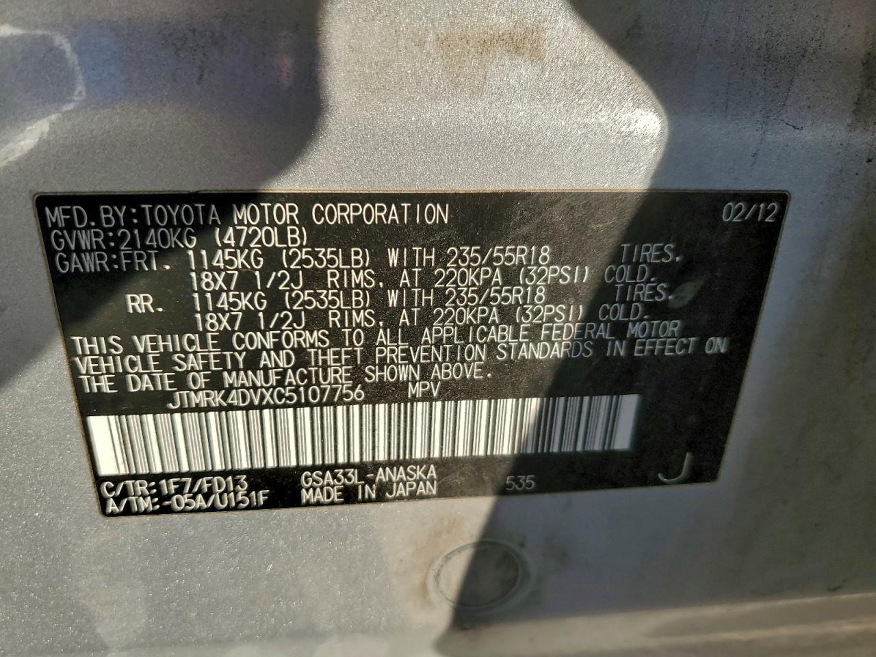 2012 TOYOTA RAV4 - JTMRK4DVXC5107756, колір - Срібний, 3.5, Бензин, Повний привід із США