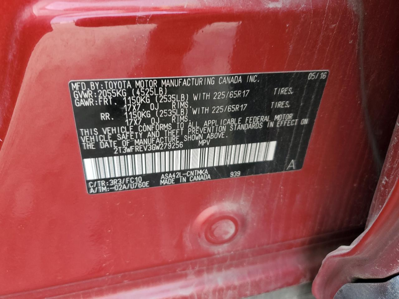 2016 TOYOTA RAV4 - 2T3WFREV3GW279256, колір - Бургундія, 2.5, Бензин, із США