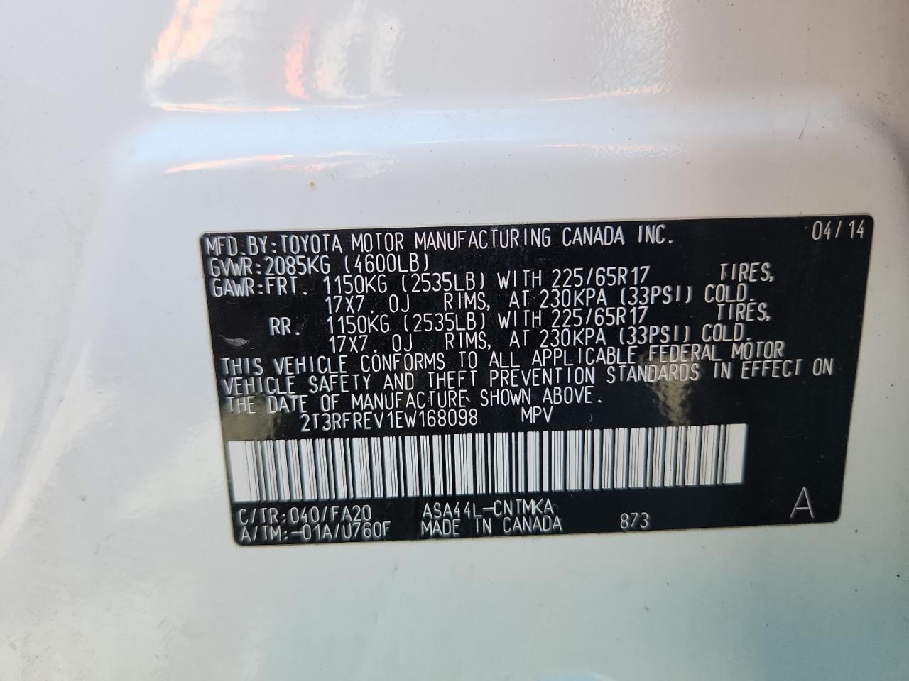 2014 TOYOTA RAV4 - 2T3RFREV1EW168098, колір - Білий, 2.5, Бензин, Повний привід із США