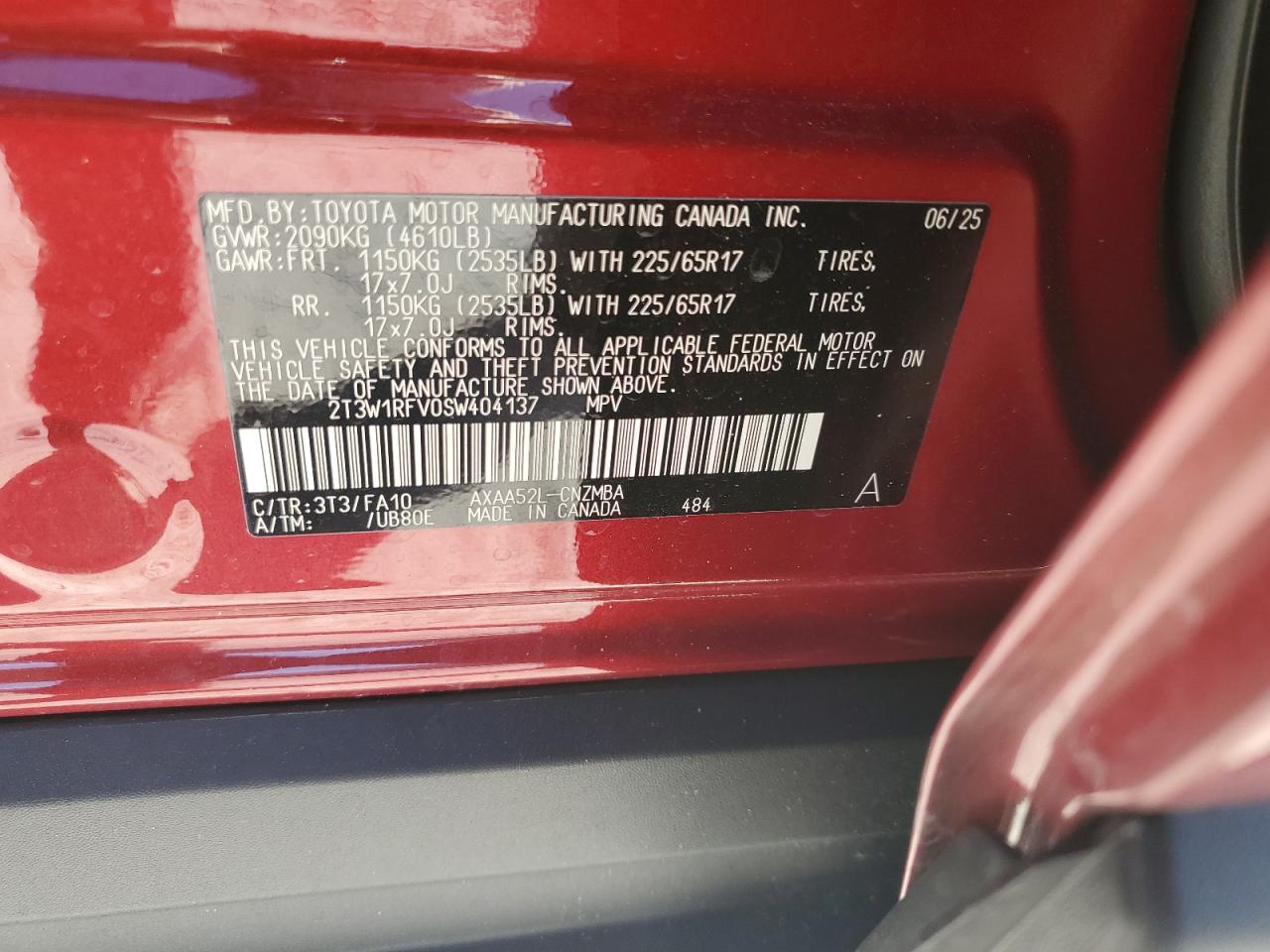 2025 TOYOTA RAV4 - 2T3W1RFV0SW404137, колір - Червоний, 2.5, Бензин, із США