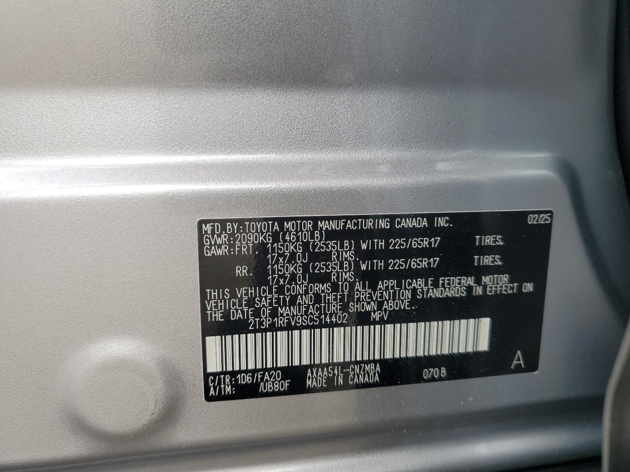 2025 TOYOTA RAV4 - 2T3P1RFV9SC514402, колір - Срібний, 2.5, Бензин, Повний привід із США