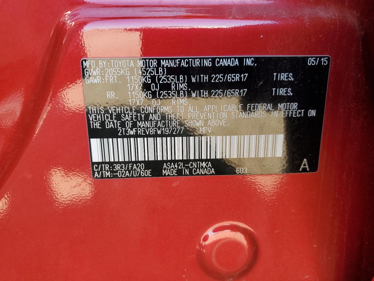 Колір ЧервонийЦиліндри 4VIN 2T3WFREV8FW197277Стан Заводиться та їде (перевірено)Ушкодження ВандалізмДата аукціона 2025-10-08