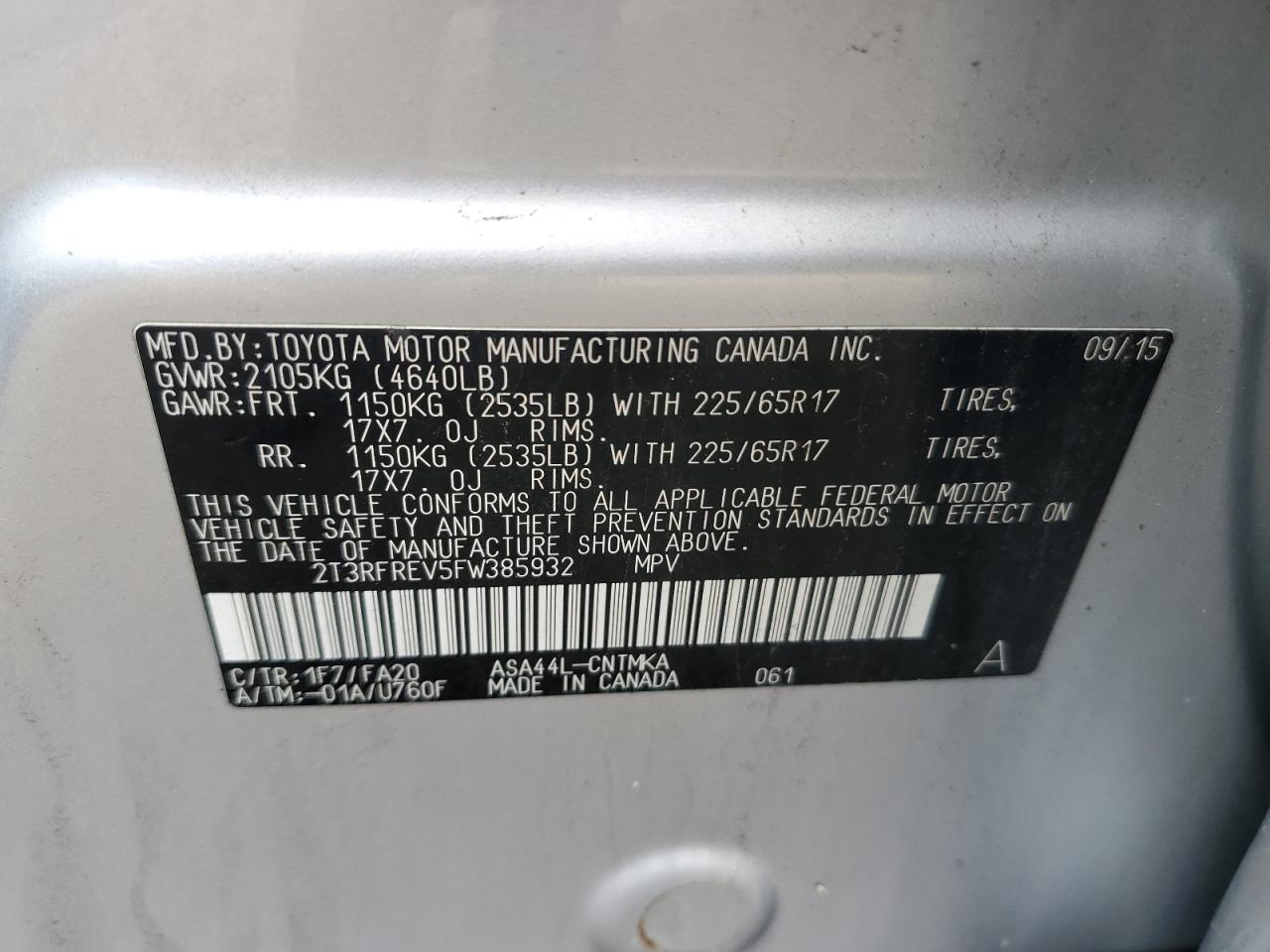 2015 TOYOTA RAV4 - 2T3RFREV5FW385932, колір - Срібний, 2.5, Бензин, Повний привід із США