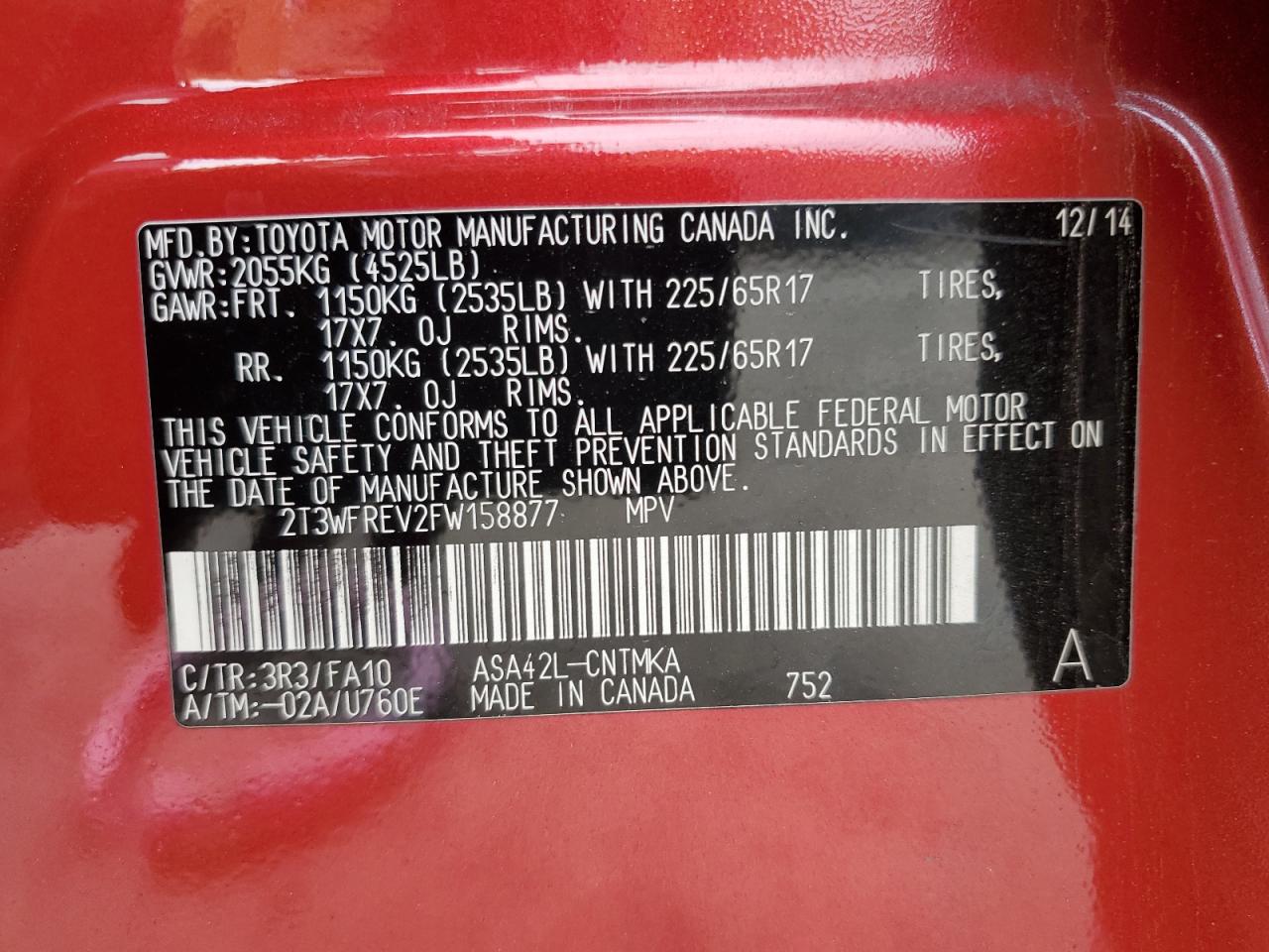 2015 TOYOTA RAV4 - 2T3WFREV2FW158877, колір - Червоний, 2.5, Бензин, із США