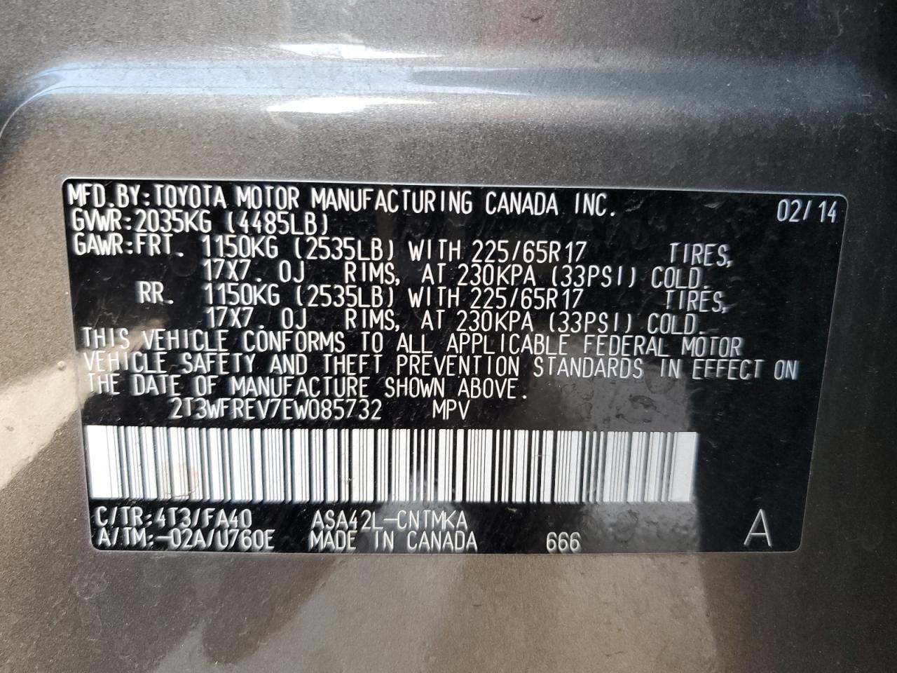 2014 TOYOTA RAV4 - 2T3WFREV7EW085732, колір - Сірий, 2.5, Бензин, із США