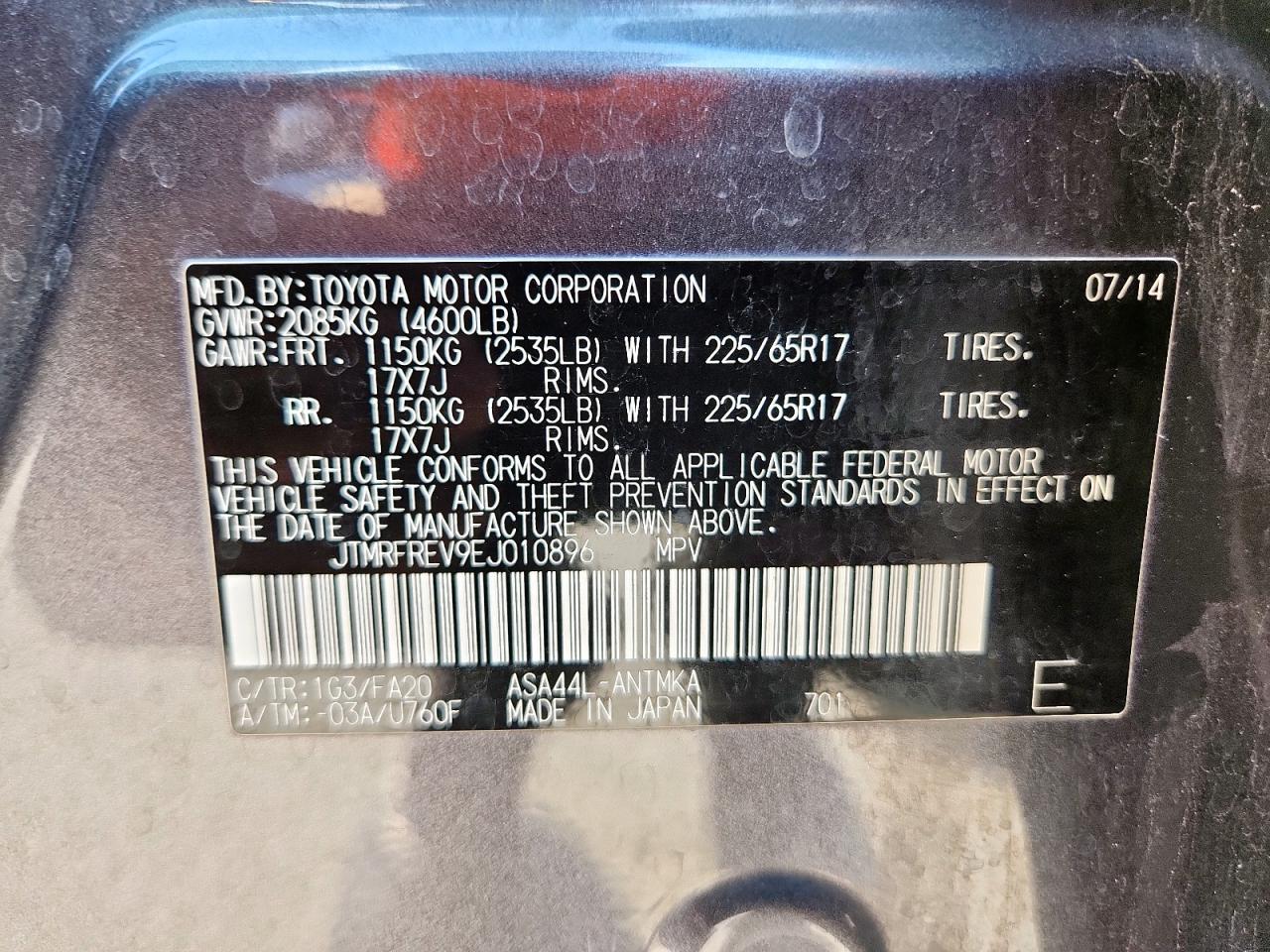 Колір Деревне вугілляЦиліндри 4Привід Повний привідVIN JTMRFREV9EJ010896Стан Заводиться та їде (перевірено)Ушкодження Задня