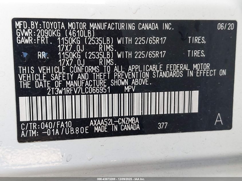 2020 TOYOTA RAV4 - 2T3W1RFV7LC066951, колір - Білий, 2.5, Бензин, Передній привід із США