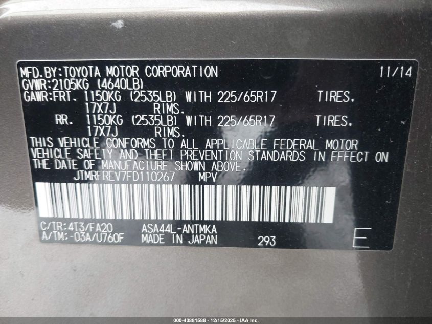 Колір СірийЦиліндри 4Привід Повний привідVIN JTMRFREV7FD110267Стан СтаціонарноУшкодження Перекидання
