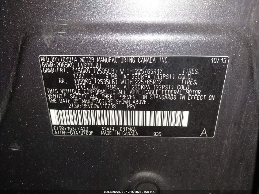 Колір СірийЦиліндри 4Привід Повний привідVIN 2T3RFREV0DW110708Стан Заводиться та їде (перевірено)Ушкодження Передня або задня