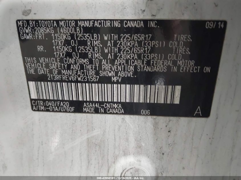 2015 TOYOTA RAV4 - 2T3RFREV6FW231567, колір - Білий, 2.5, Бензин, Повний привід із США