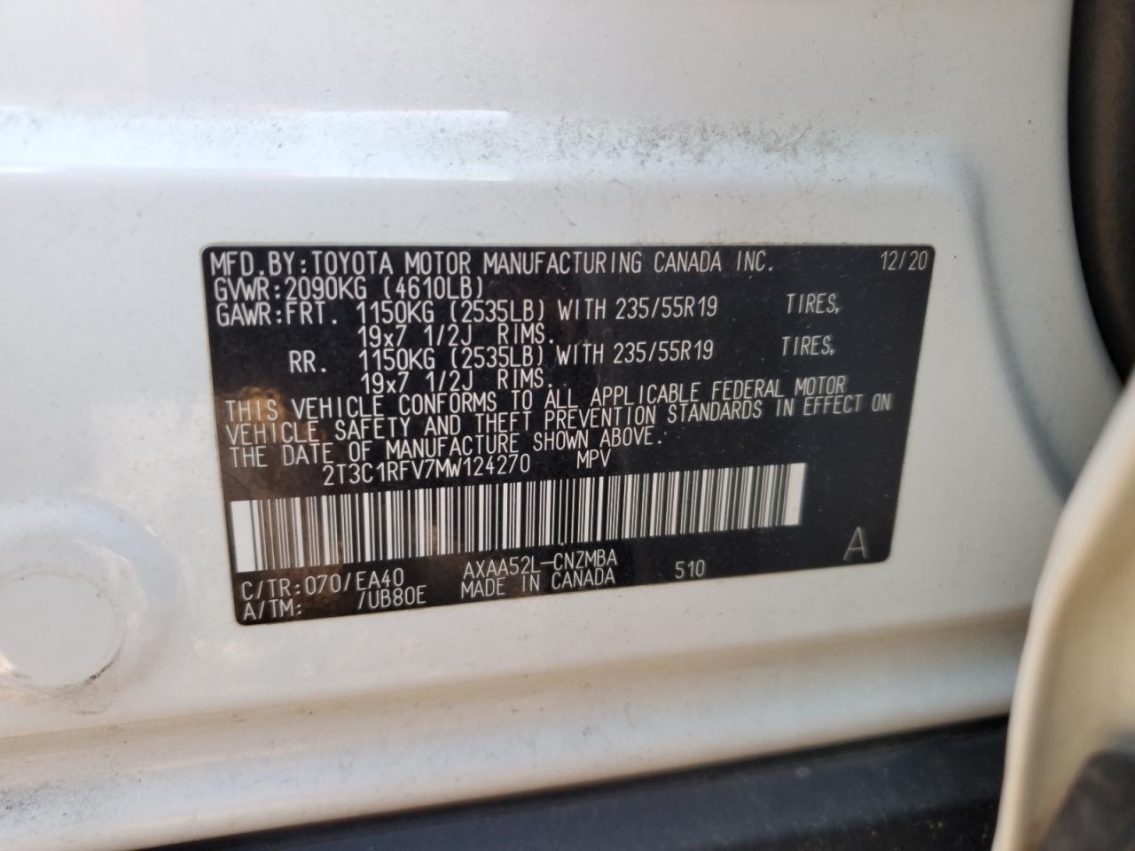 2021 TOYOTA RAV4 - 2T3C1RFV7MW124270, колір - Білий, 2.5, Бензин, із США