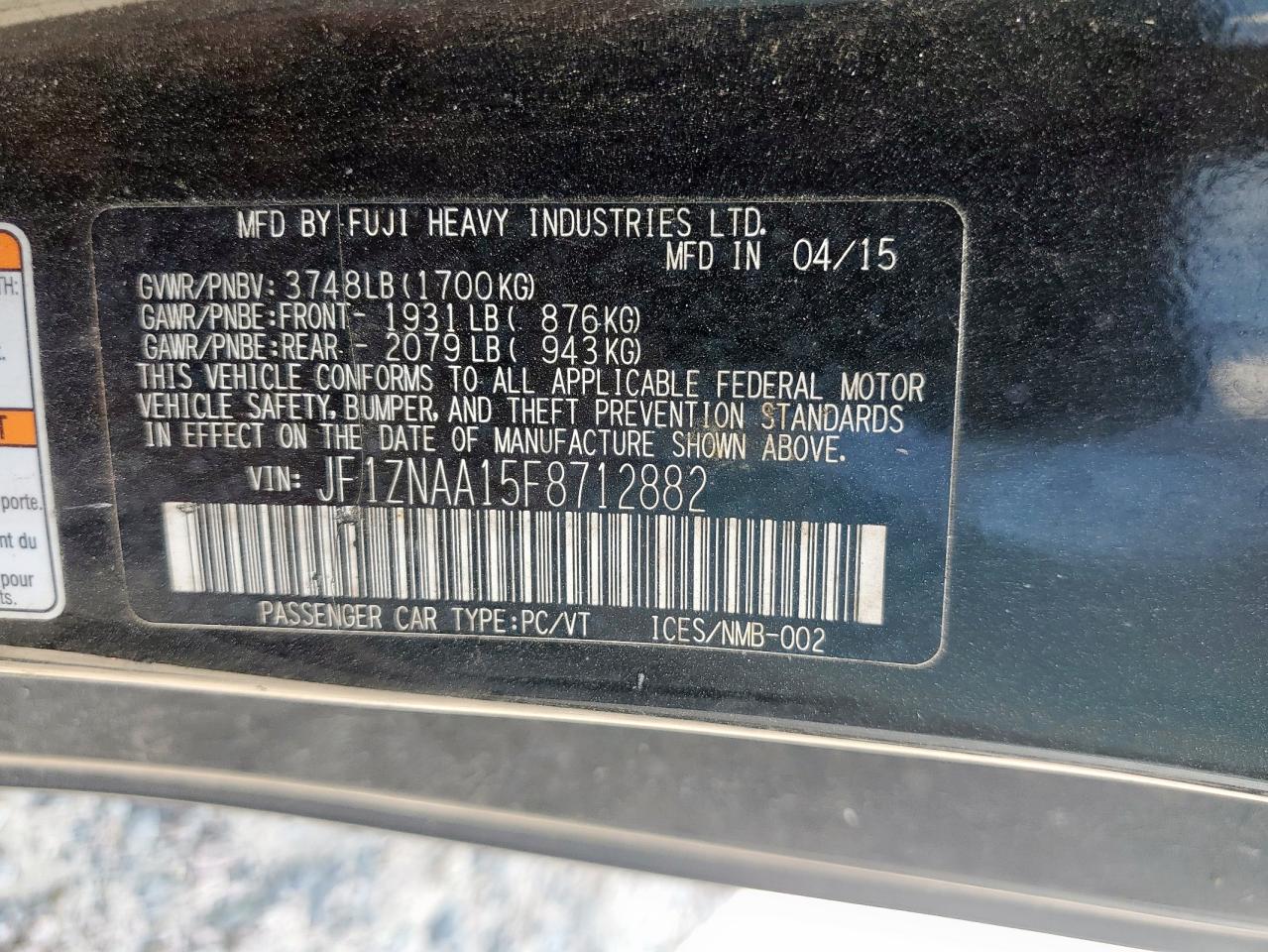 Колір ЧорнийЦиліндри 4Привід Задній привідVIN JF1ZNAA15F8712882Стан Заводиться та їде (перевірено)Ушкодження ЗадняДата аукціона 2025-10-07