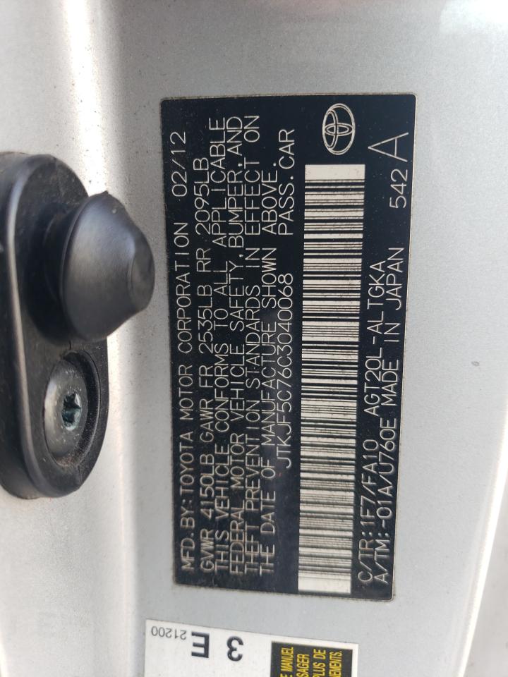 Колір СрібнийЦиліндри 4VIN JTKJF5C76C3040068Стан НевідомоУшкодження Вода