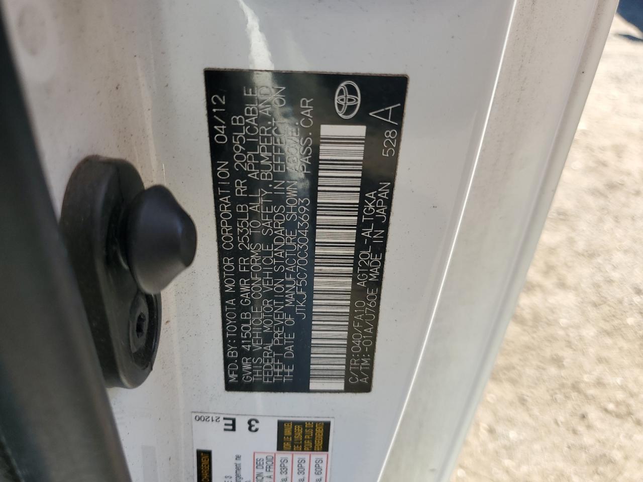 Колір БілийЦиліндри 4VIN JTKJF5C70C3043693Стан Заводиться та їде (перевірено)Ушкодження Передня або задня