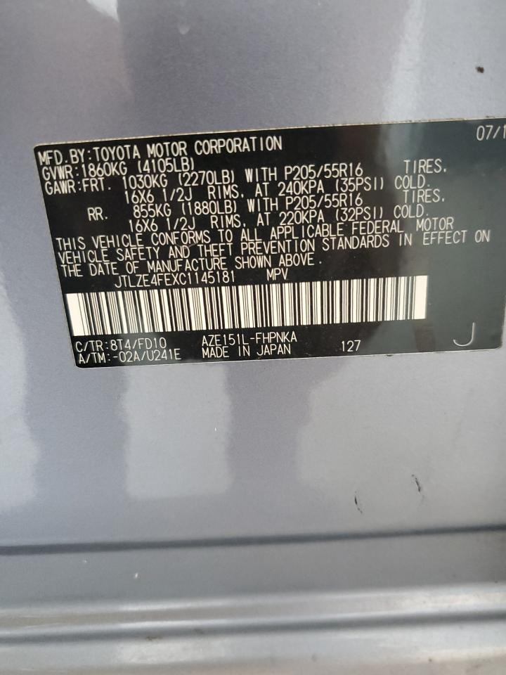 Колір СірийЦиліндри 4VIN JTLZE4FEXC1145181Стан Заводиться та їде (перевірено)Ушкодження Передня або задня