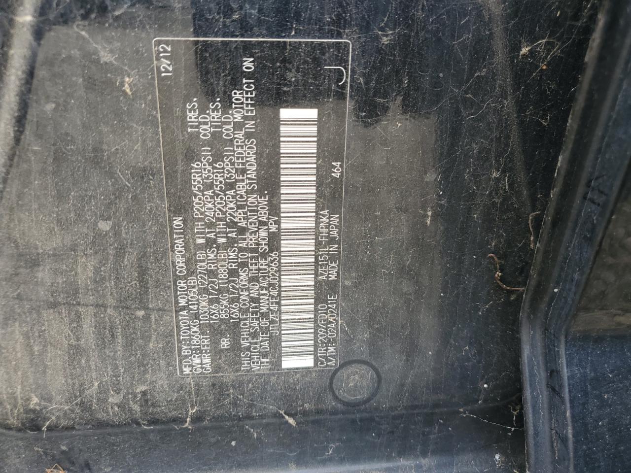 2012 TOYOTA SCION XB - JTLZE4FE4CJ029636, колір - Чорний, 2.4, Бензин, із США