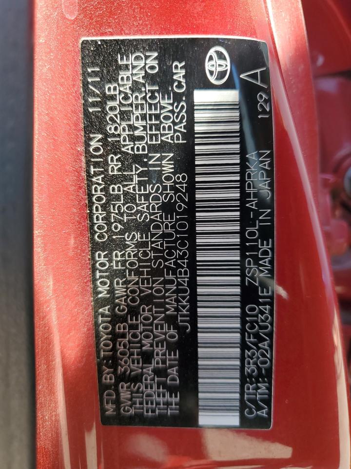 Колір ЧервонийЦиліндри 4VIN JTKKU4B43C1019248Стан Заводиться та їде (перевірено)Ушкодження По всьому авто