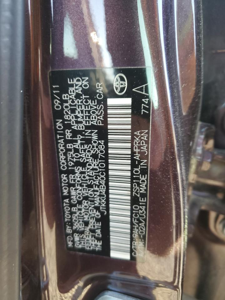Колір ФіолетовийЦиліндри 4VIN JTKKU4B40C1017084Стан Заводиться та їде (перевірено)Ушкодження Передня або задня