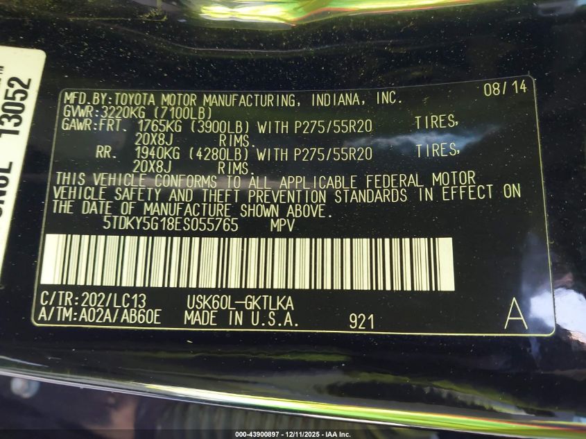 2014 TOYOTA SEQUOIA - 5TDKY5G18ES055765, колір - Чорний, 5.7, Бензин, із США