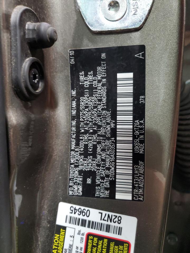 2010 TOYOTA SEQUOIA - 5TDDW5G16AS035734, колір - Коричневий, 5.7, Бензин, 4x4 з заднім приводом із США