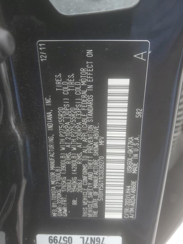 2012 TOYOTA SEQUOIA - 5TDYY5G11CS039270, колір - Чорний, 5.7, Бензин, Задній привід із США