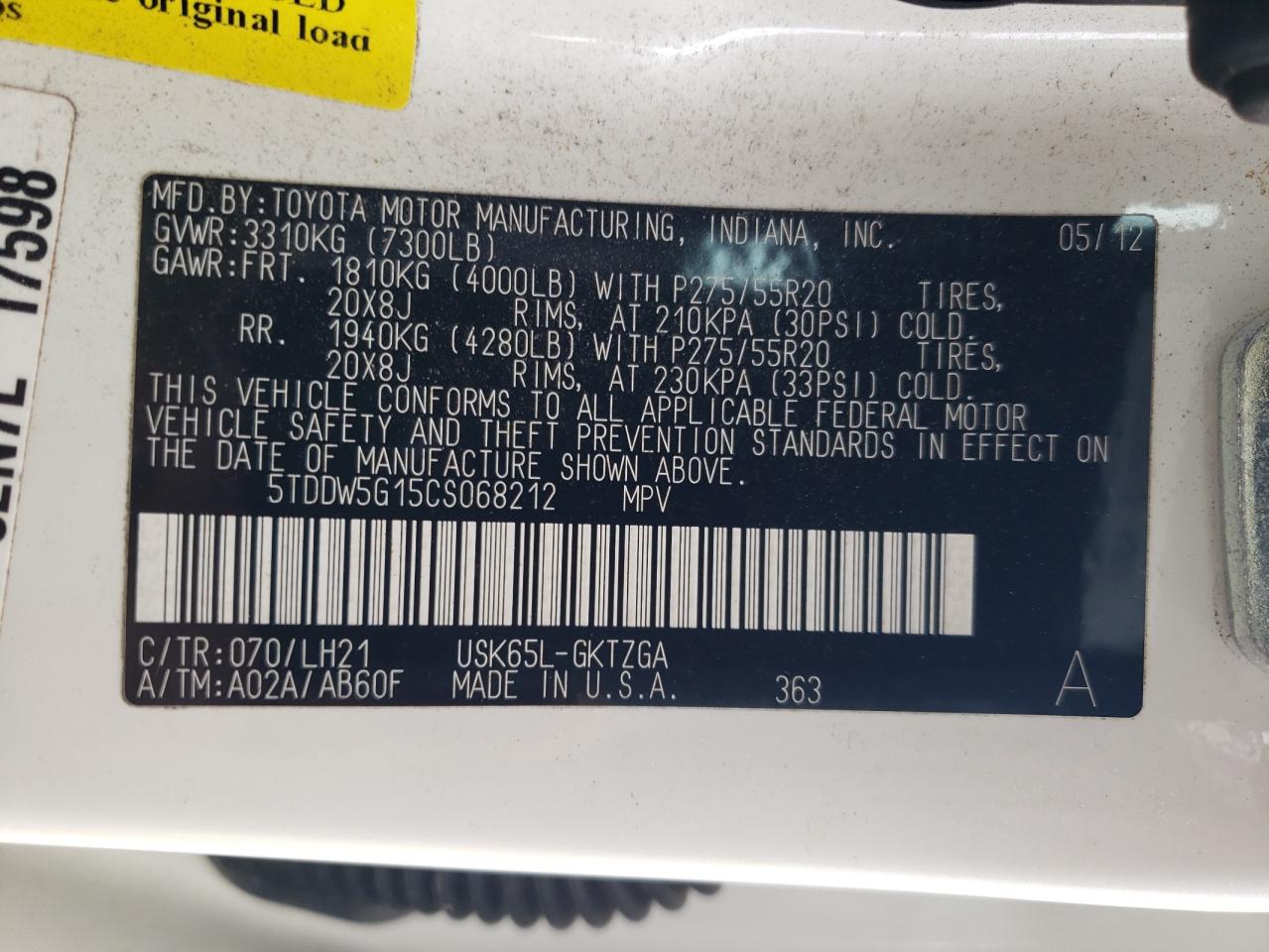 2012 TOYOTA SEQUOIA - 5TDDW5G15CS068212, колір - Білий, 5.7, Бензин, 4x4 з заднім приводом із США