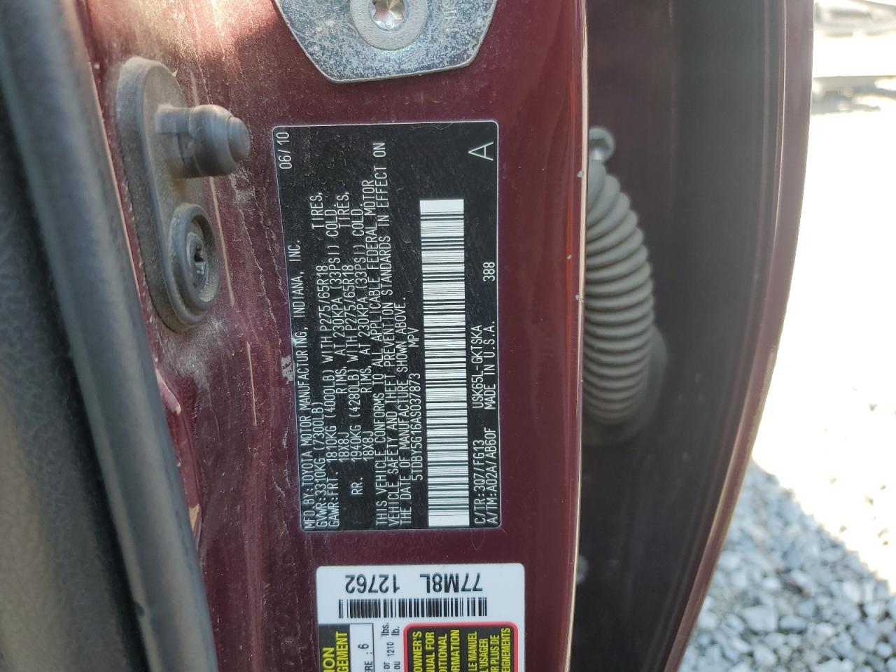 2010 TOYOTA SEQUOIA - 5TDBY5G16AS037873, колір - Бургундія, 5.7, Бензин, 4x4 з заднім приводом із США