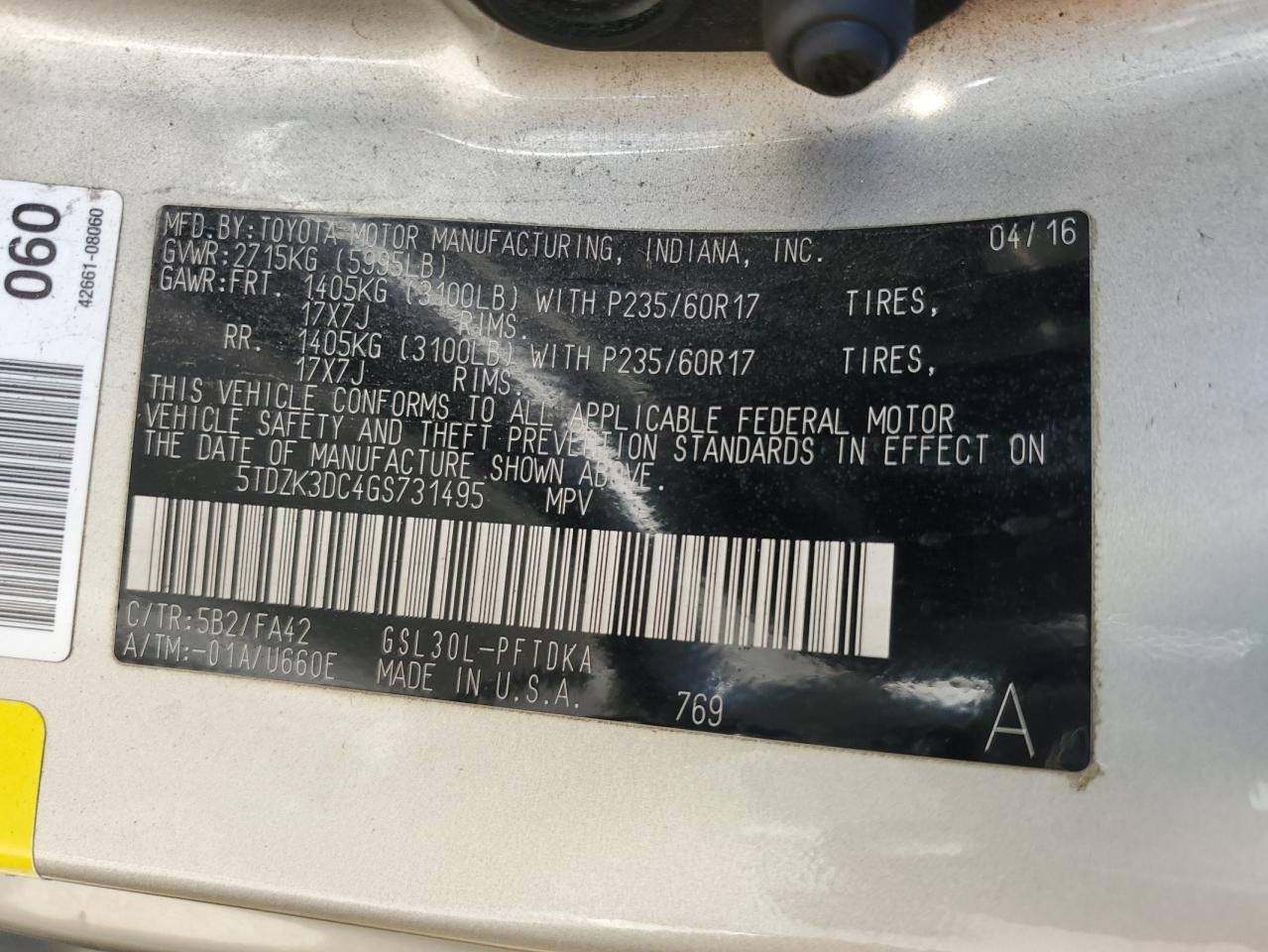 2016 TOYOTA SIENNA - 5TDZK3DC4GS731495, колір - Загар, 3.5, Бензин, із США