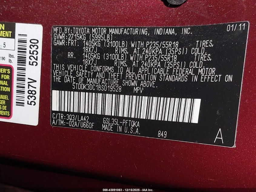 2011 TOYOTA SIENNA - 5TDDK3DC1BS019528, колір - Бордовий, 3.5, Бензин, Повний привід із США