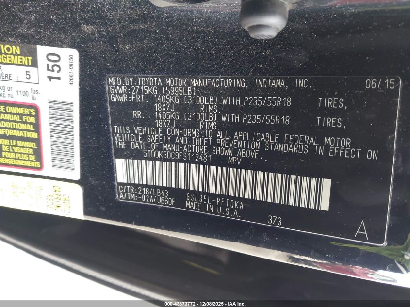 2015 TOYOTA SIENNA - 5TDDK3DC9FS112481, колір - Чорний, 3.5, Бензин, Повний привід із США