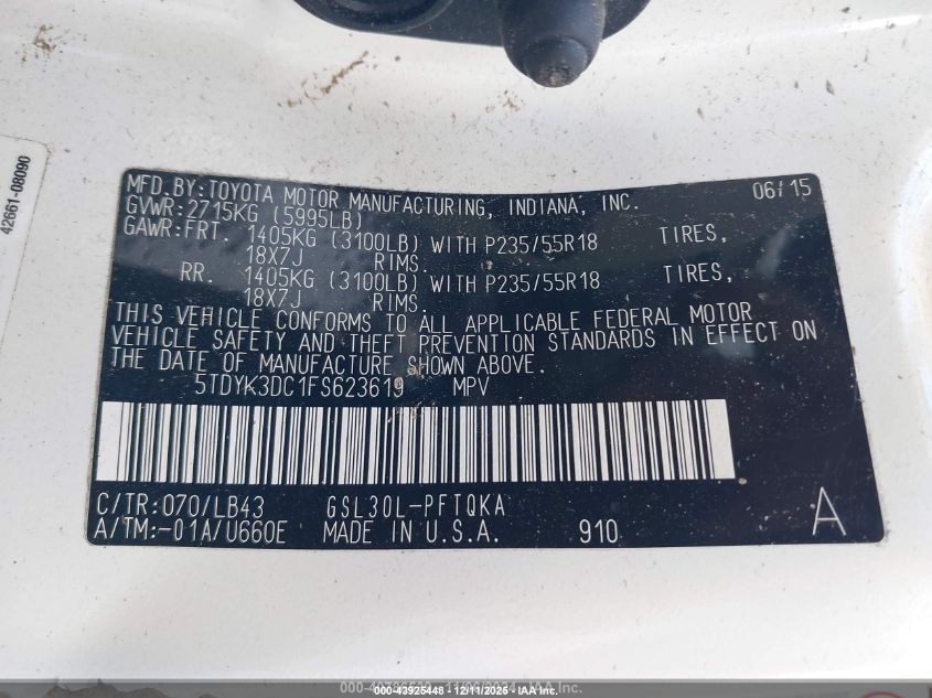 2015 TOYOTA SIENNA - 5TDYK3DC1FS623619, колір - Білий, 3.5, Бензин, Передній привід із США