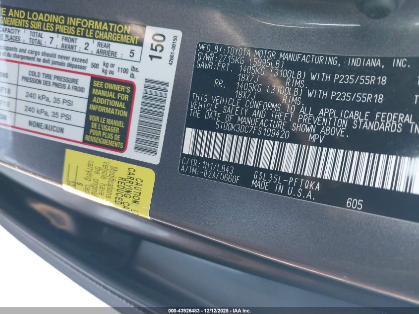 2015 TOYOTA SIENNA - 5TDDK3DC7FS109420, колір - Сірий, 3.5, Бензин, Повний привід із США