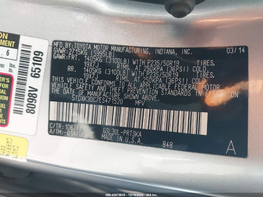 Колір СірийЦиліндри 6Привід Передній привідVIN 5TDXK3DC7ES471520Стан Заводиться та їде (перевірено)Ушкодження Ліва сторона