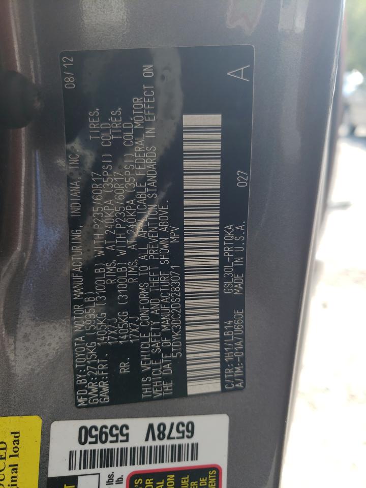2013 TOYOTA SIENNA - 5TDYK3DC2DS283071, колір - Деревне вугілля, 3.5, Бензин, із США