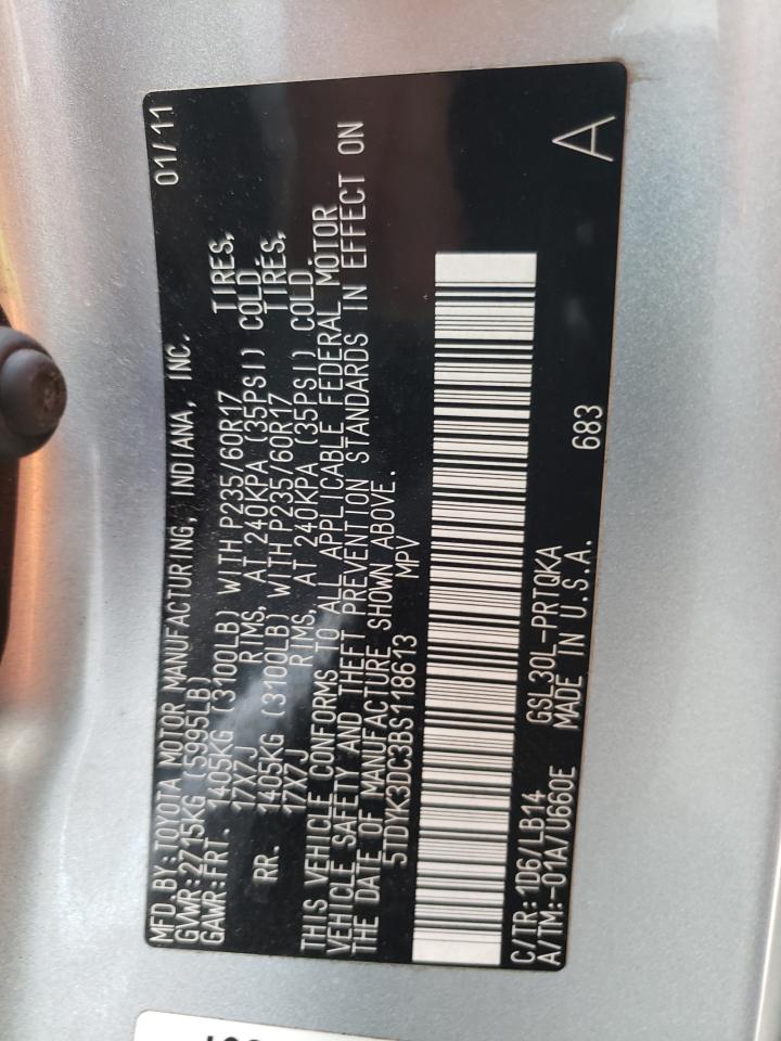 2011 TOYOTA SIENNA - 5TDYK3DC3BS118613, колір - Срібний, 3.5, Бензин, із США