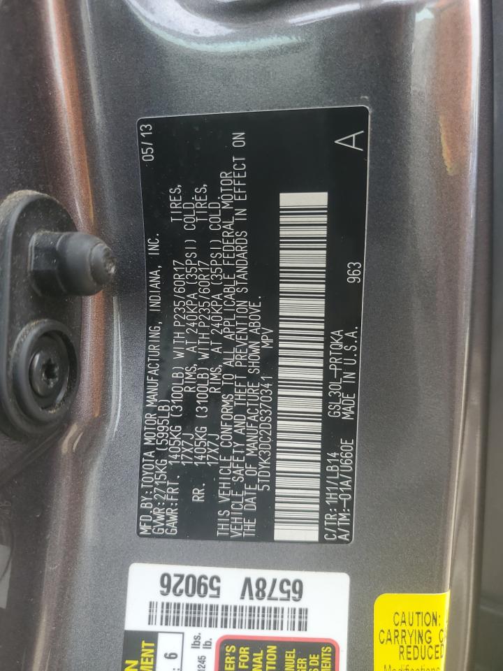 2013 TOYOTA SIENNA - 5TDYK3DC2DS370341, колір - Срібний, 3.5, Бензин, із США
