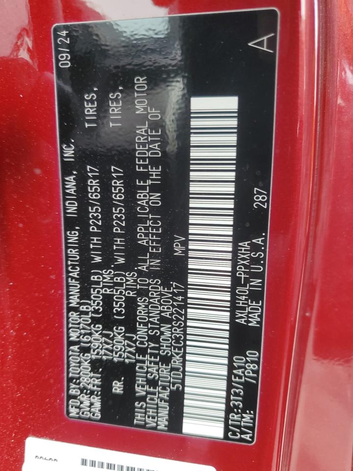 2024 TOYOTA SIENNA - 5TDJRKEC3RS221417, колір - Бургундія, 2.5, Гібрид, із США