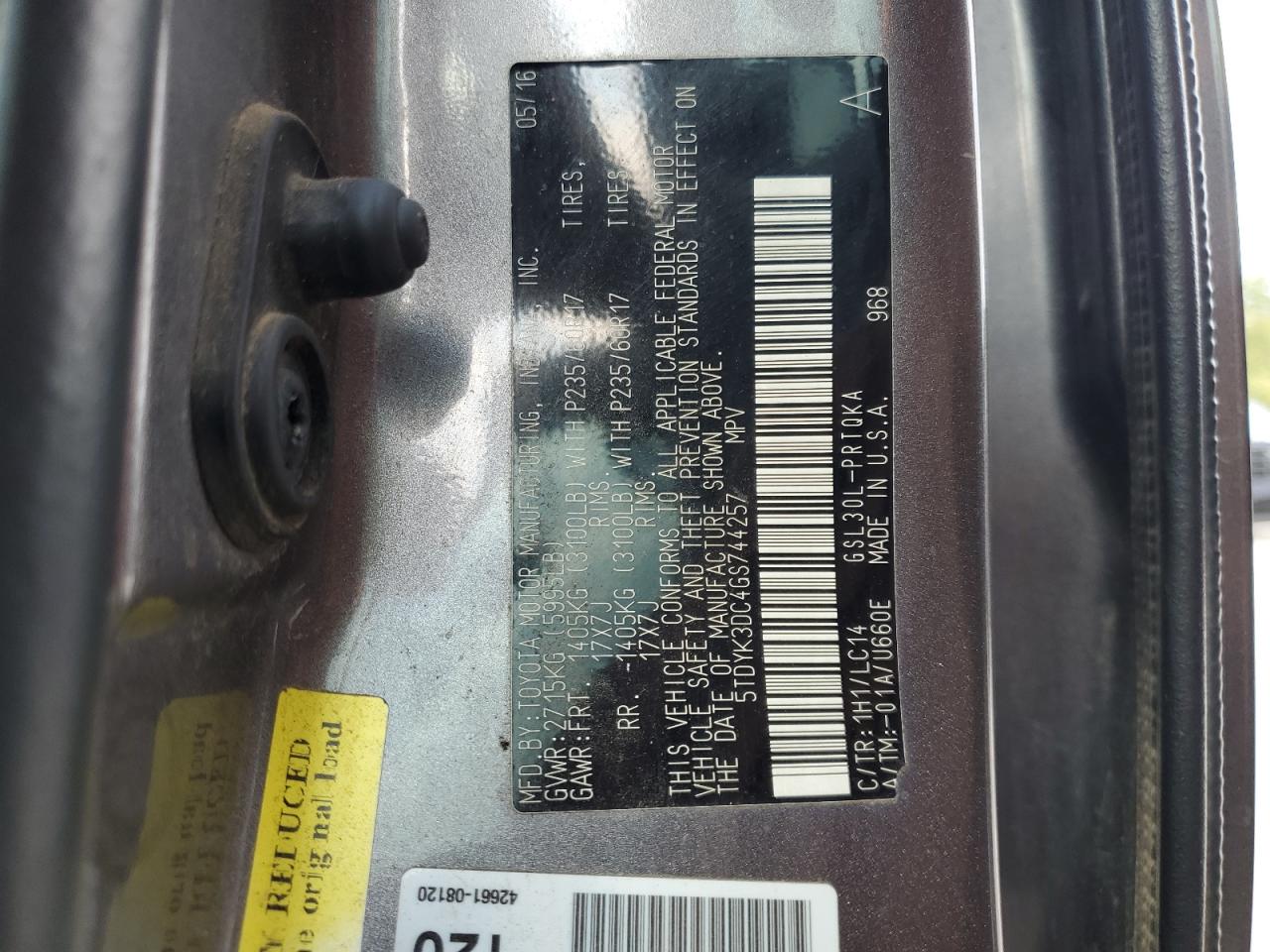 2016 TOYOTA SIENNA - 5TDYK3DC4GS744257, колір - Сірий, 3.5, Бензин, із США