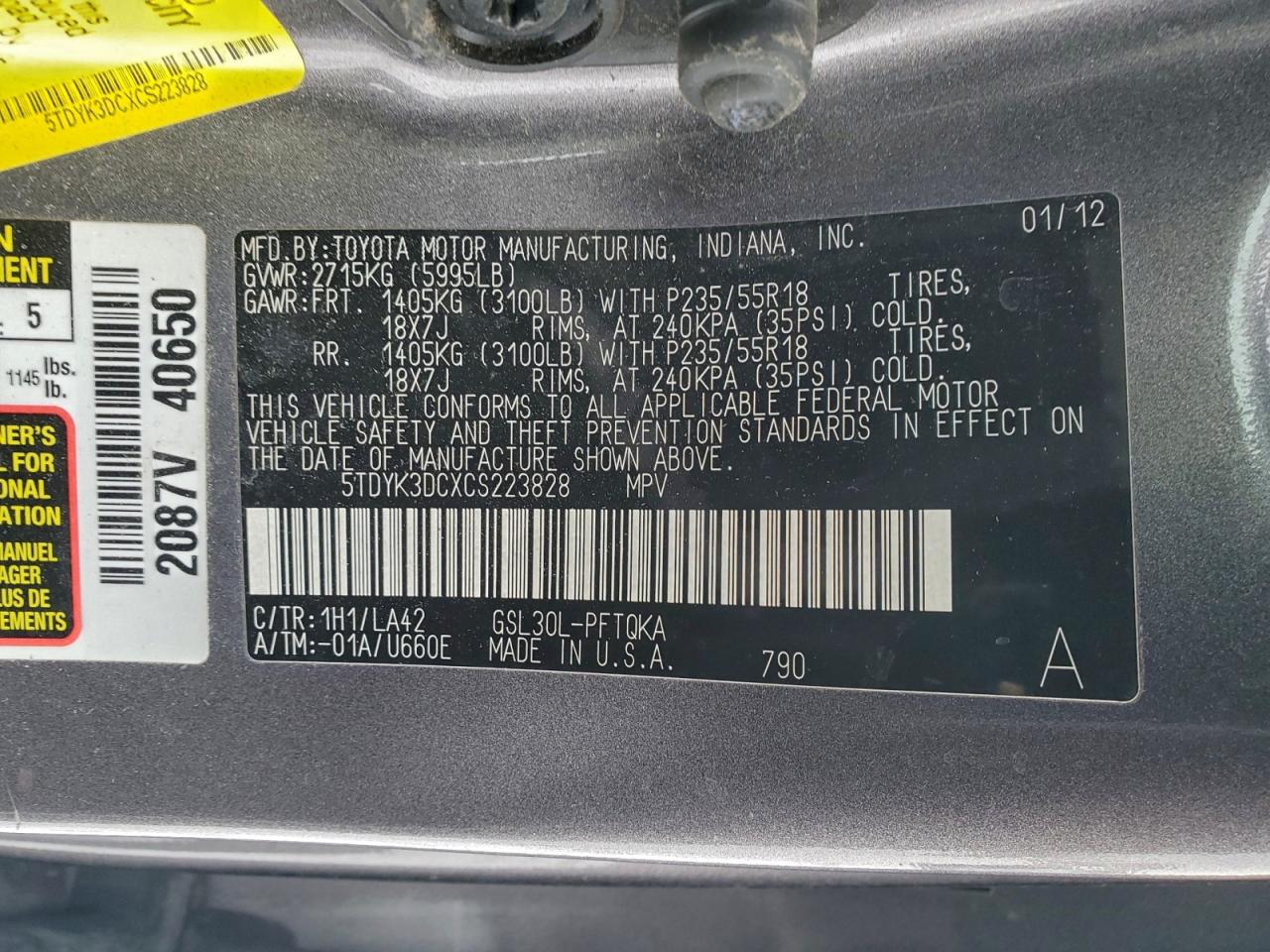 2012 TOYOTA SIENNA - 5TDYK3DCXCS223828, колір - Сірий, 3.5, Бензин, із США