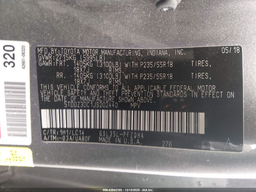 Колір СірийЦиліндри 6Привід Повний привідVIN 5TDDZ3DC1JS202440Стан Заводиться та їде (перевірено)Ушкодження Ліва сторона