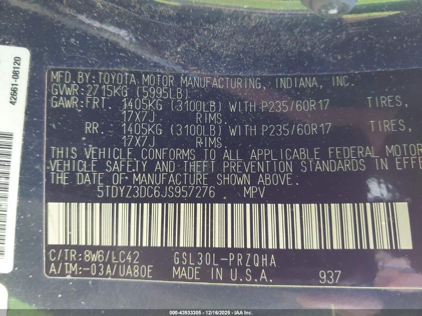 2018 TOYOTA SIENNA - 5TDYZ3DC6JS957276, колір - , 3.5, Бензин, Передній привід із США