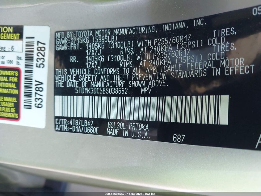 2011 TOYOTA SIENNA - 5TDYK3DC5BS038682, колір - Золотий, 3.5, Бензин, Передній привід із США