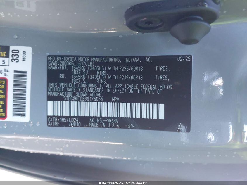 2025 TOYOTA SIENNA - 5TDCSKFC3SS175055, колір - Сірий, 2.5, Гібрид, Повний привід із США